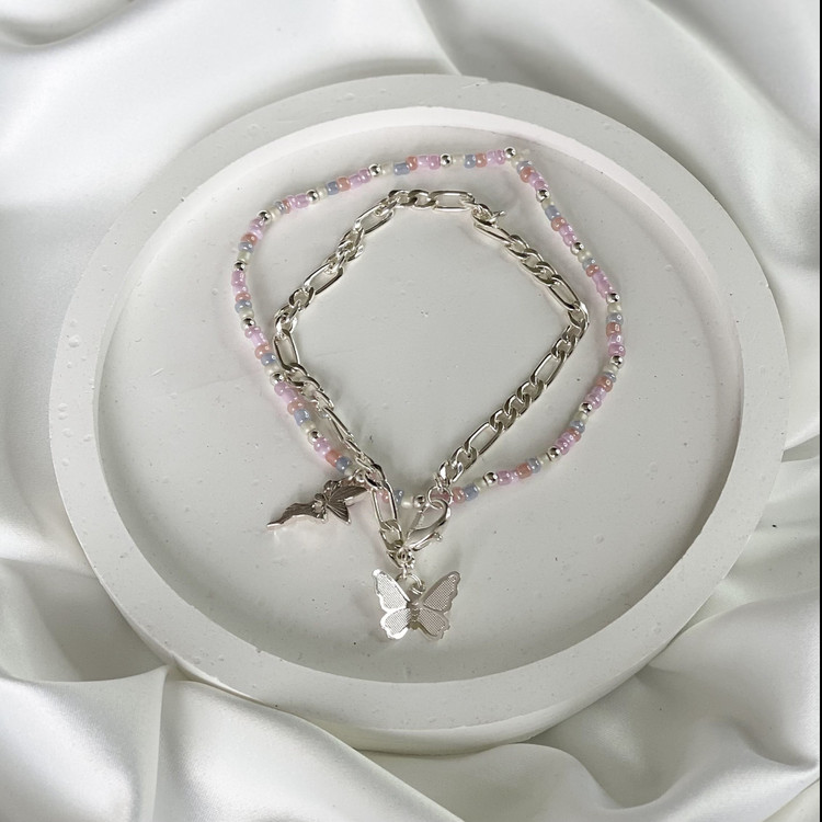 دستبند دو ریز طرح پروانهی و مرواریدی